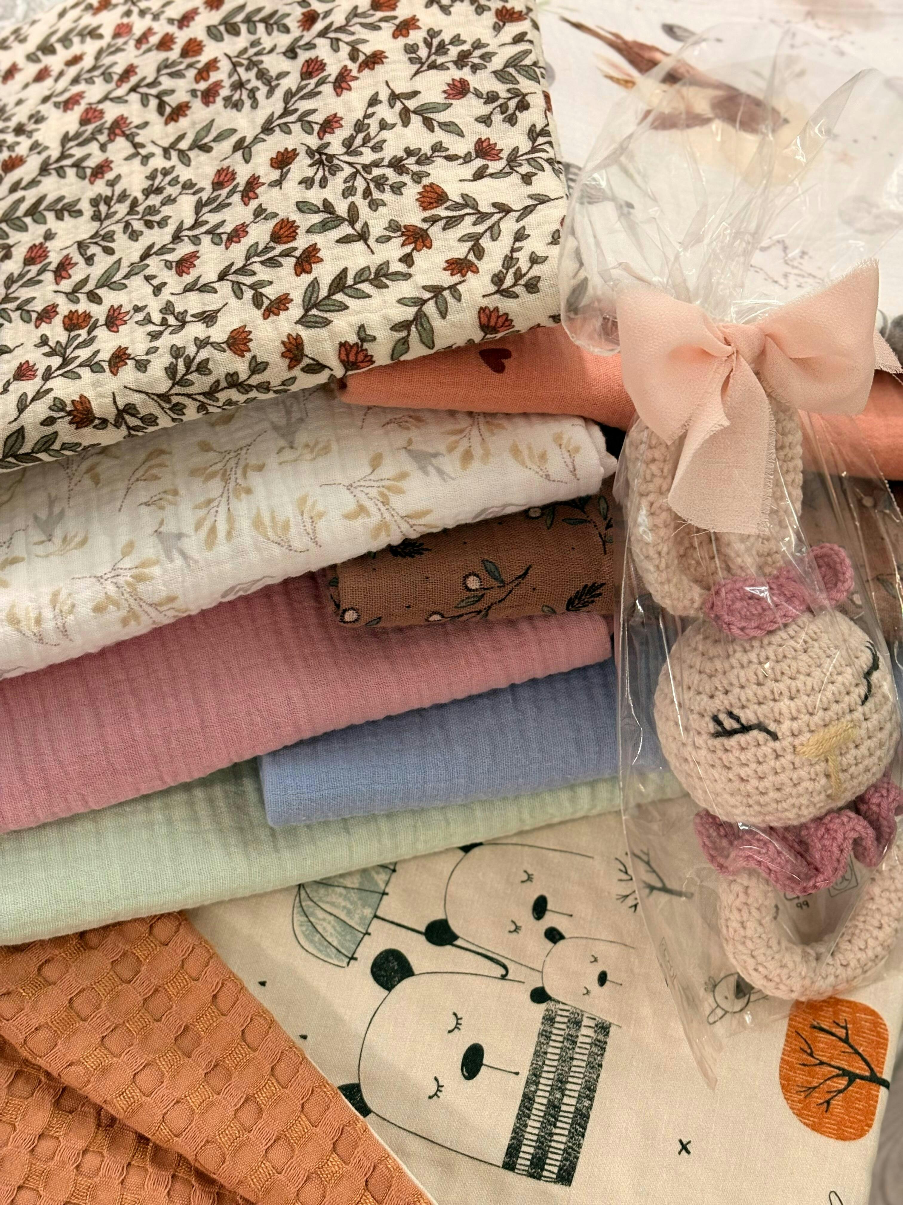 Muselina din bumbac 100% pentru bebelusi, realizata manual, disponibila in dimensiunile 40x60 cm si 70x90 cm, potrivita pentru utilizare zilnica.